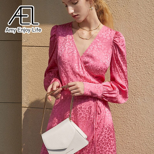 AEL Summer Wrap Dress Satin V-Neck Loose Waist Lace Up Ladies Long Streetwear Violet And Rose Red Pajama Look