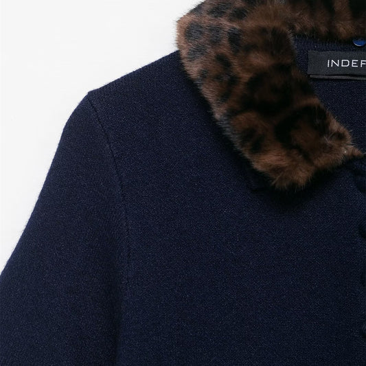 Animal print collar knitted short sleeved top