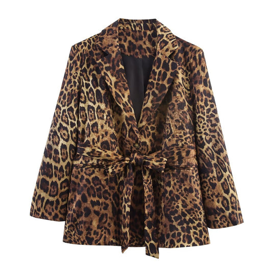 Animal print jacquard suit+pants set