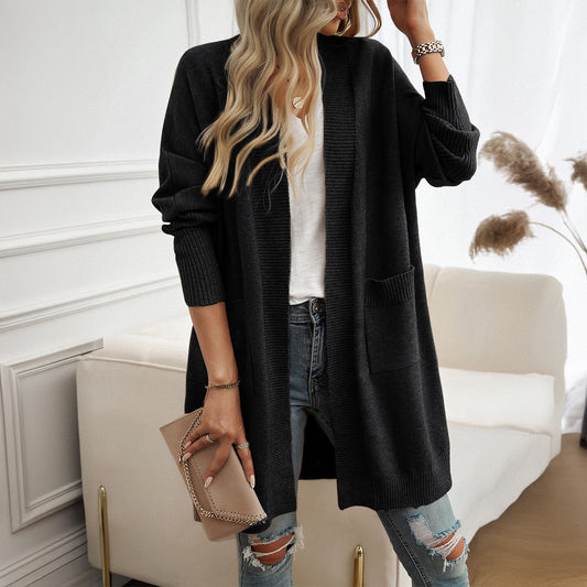 Autumn and winter European and American women's batsleeved temperament cardigan solid color sweater jacket