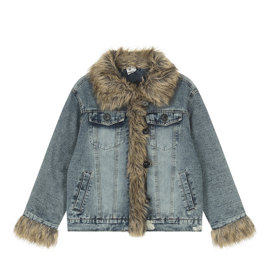Women's Regular Denim Fleece-Lined Cotton Coat