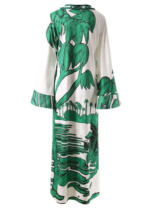Women'S Summer High Quality Designer Fashion Chic Printed Loose Bohemian Holiday Runway Gorgeous Casual Beach Green Long Dress