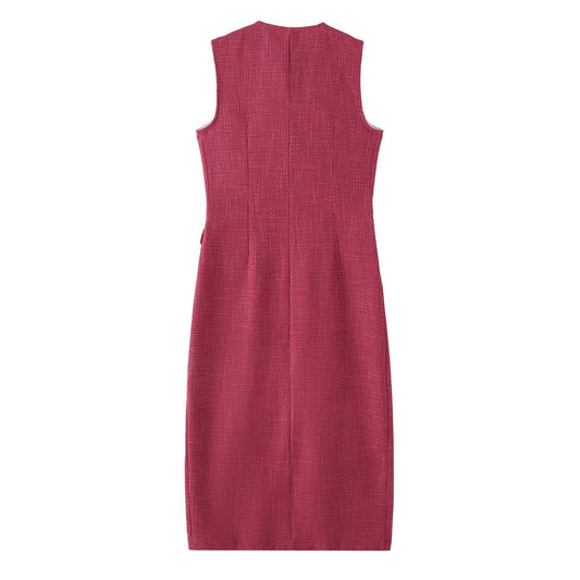 Woolen patchwork waist cinching slim fitting breasted decorative dress