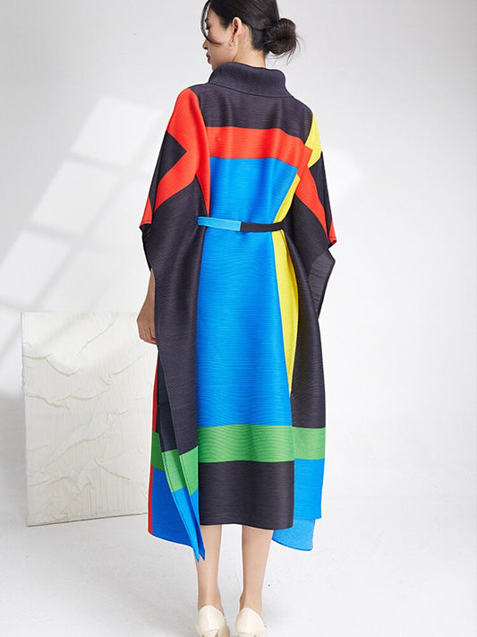 XITAO Fashion Folds Dress Turtleneck Contrast Color Splicing Bat Wing Sleeve Pullover Dress Temperament Summer New SMH1781
