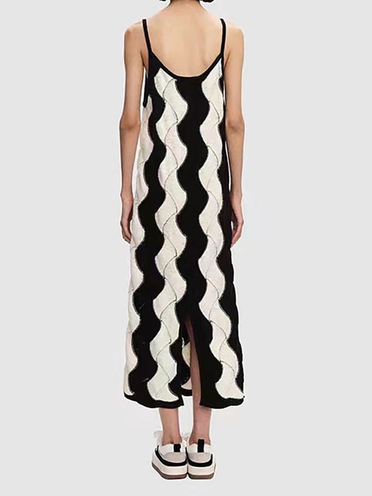 y2k summer black and white collision vertical wave pattern cotton sling long dresses