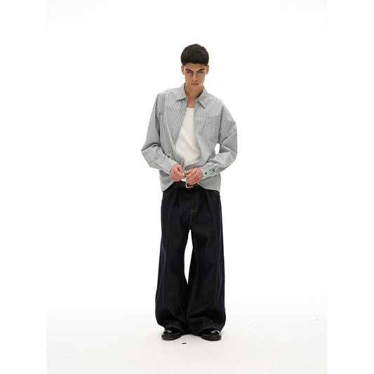 Zipper Front Trendy Shirt Unisex Casual Long Sleeve Striped Shirt