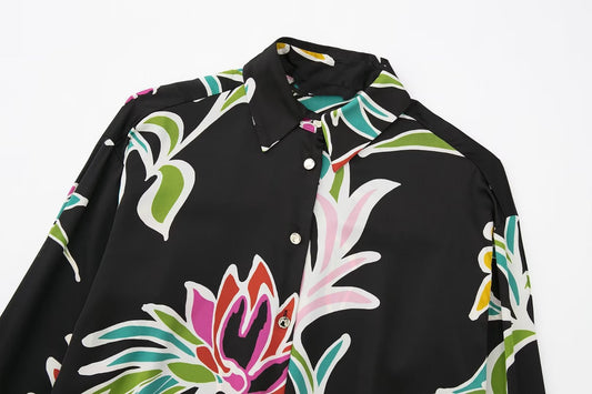 Autumn New Fashion Loose Floral Print Shirt Top Women