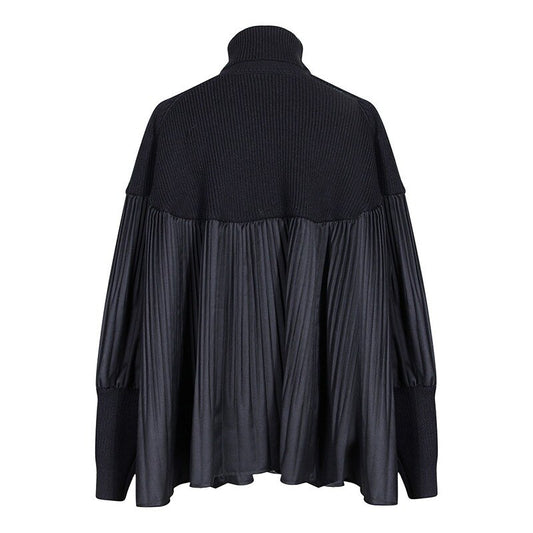 Autumn and Winter Stitching Split Large Size Knitted Sweater Loose Fit High Neck Long Sleeve Ladies Pullover New Fashion