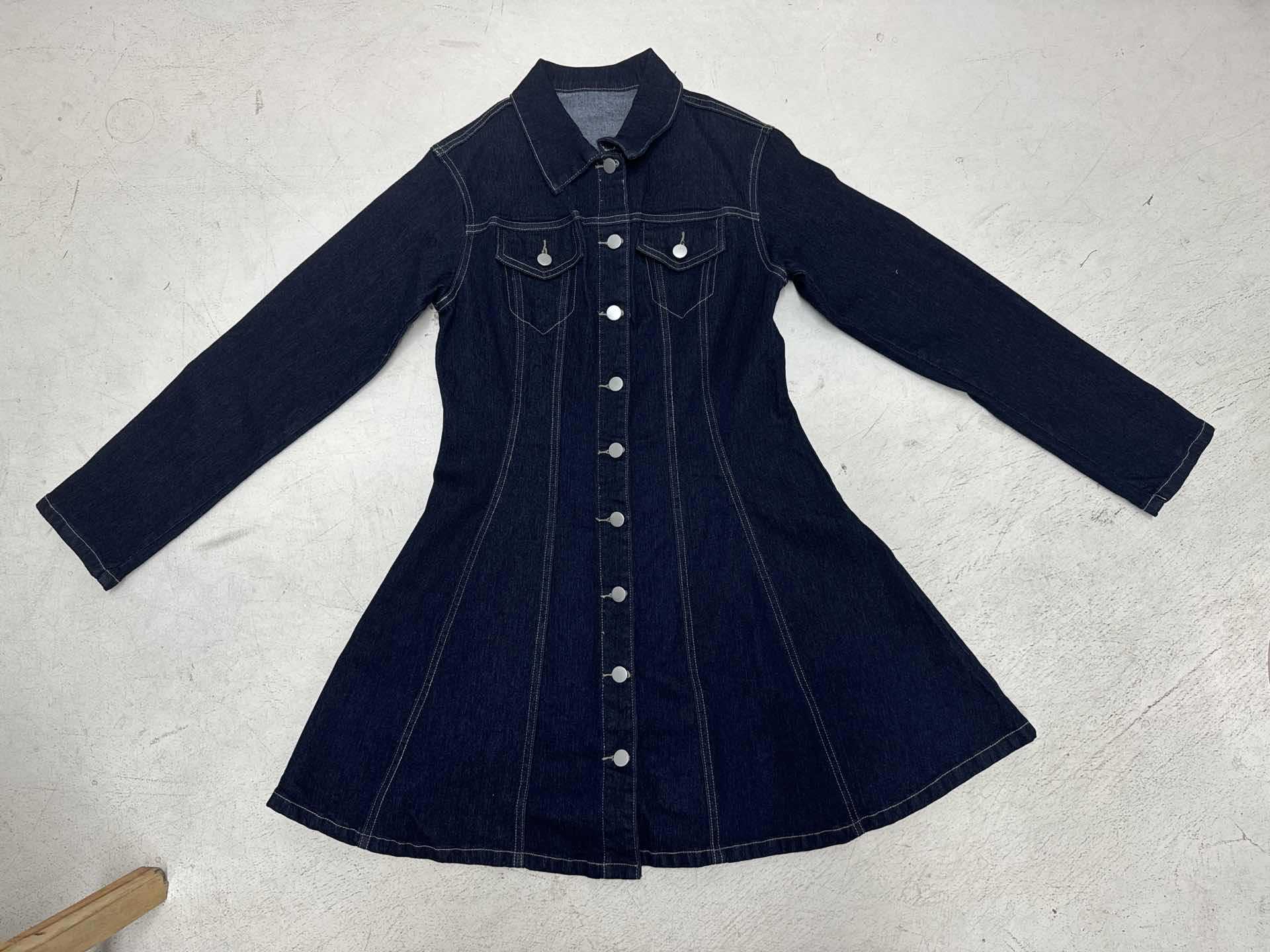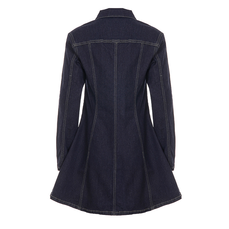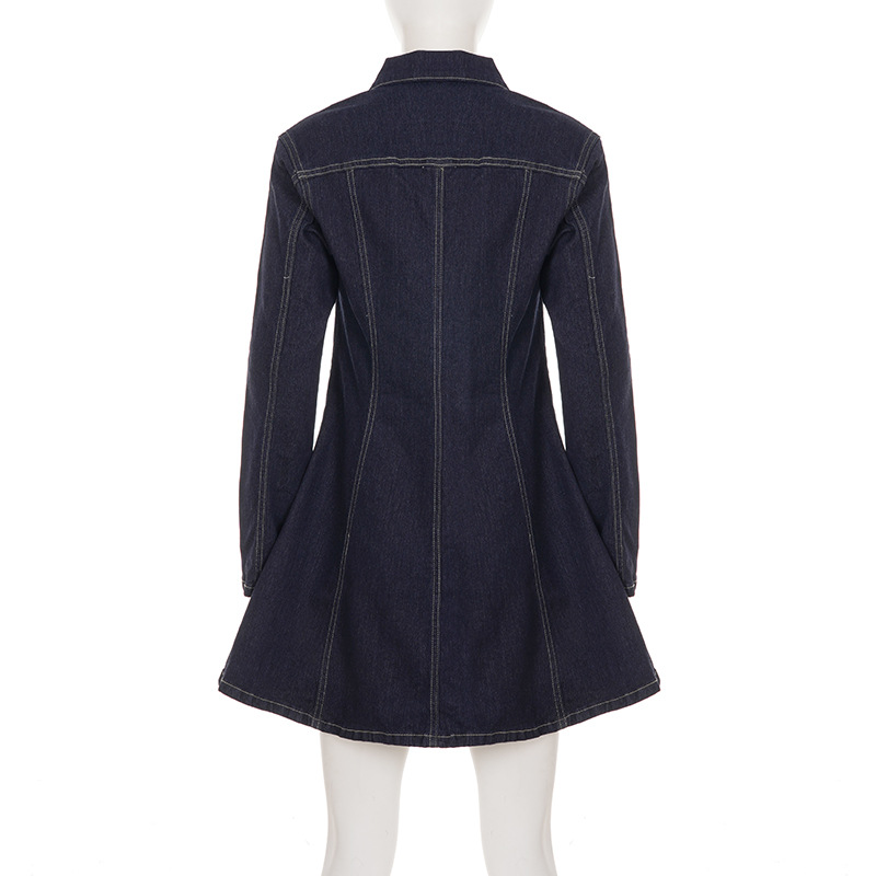 A-Line Button-Down Denim Dress with Edgy Design and Feminine Flare Skirt
