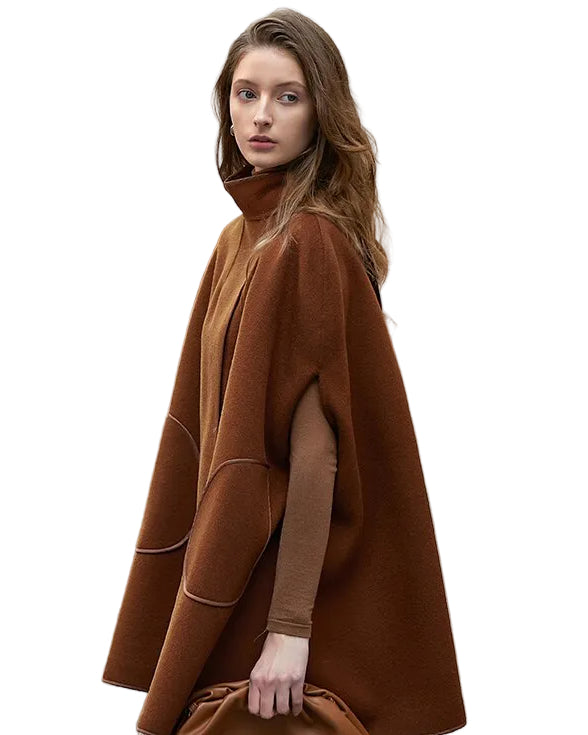 Manteau d'hiver en laine AEL pour femmes, poncho, veste chaude, cape longue, manteau extérieur, châle décontracté pour femme
