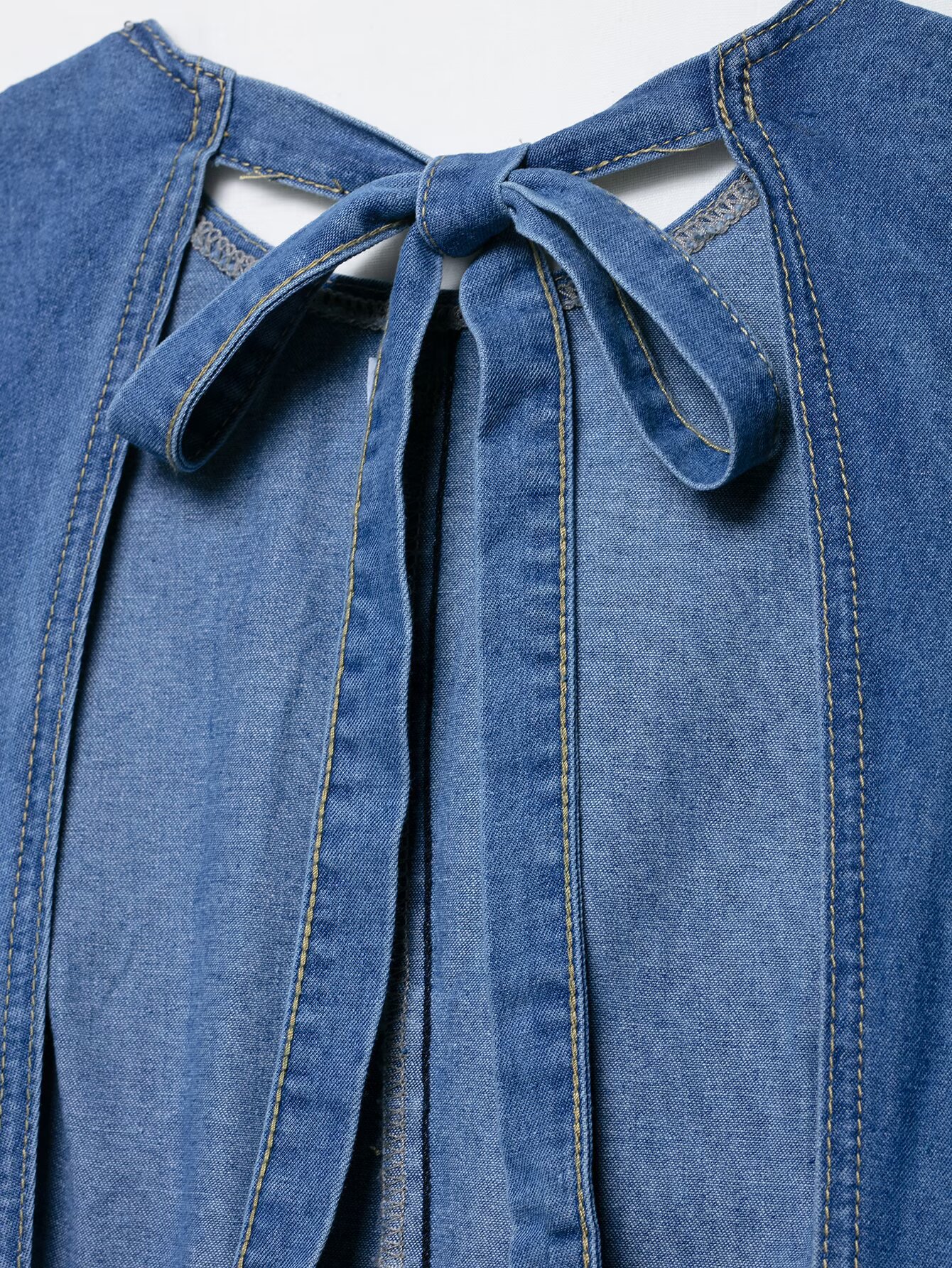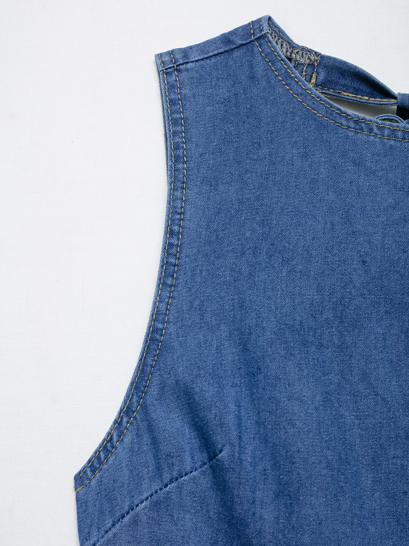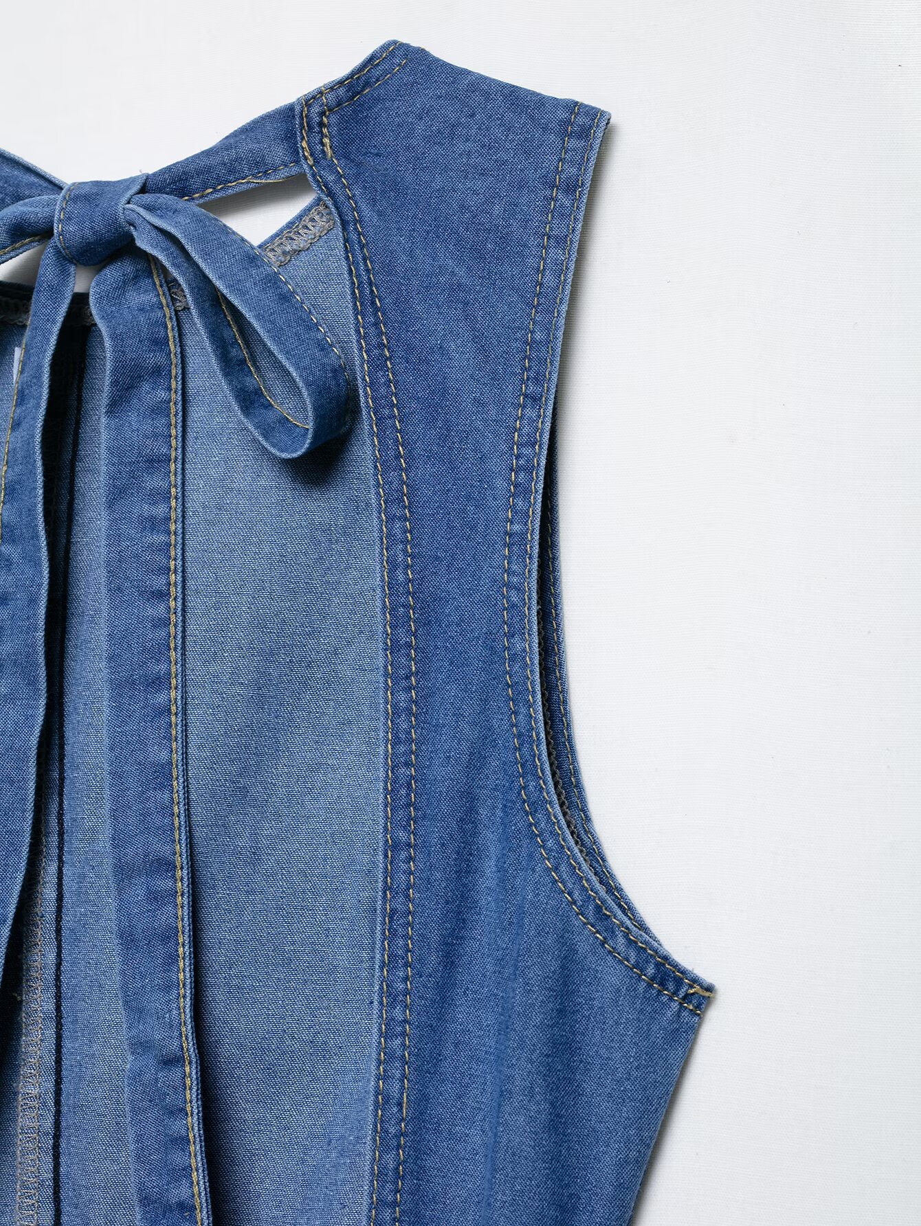 Backless hanging neck tied denim dress