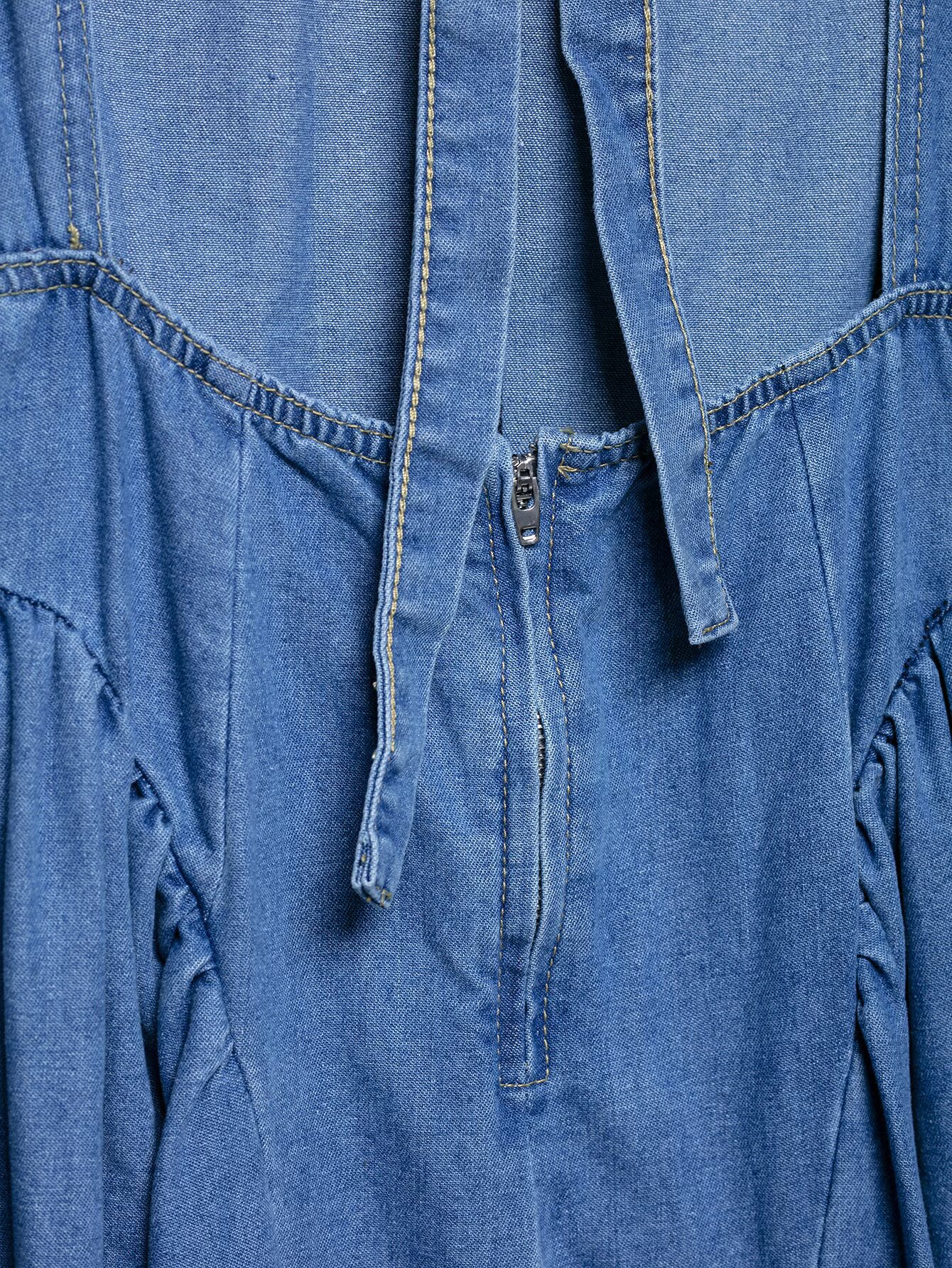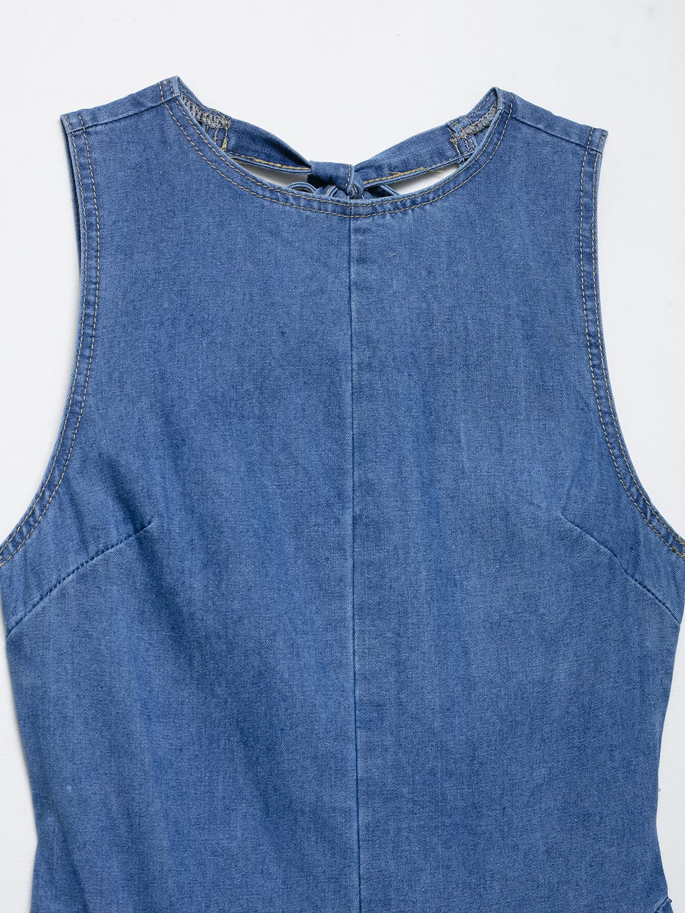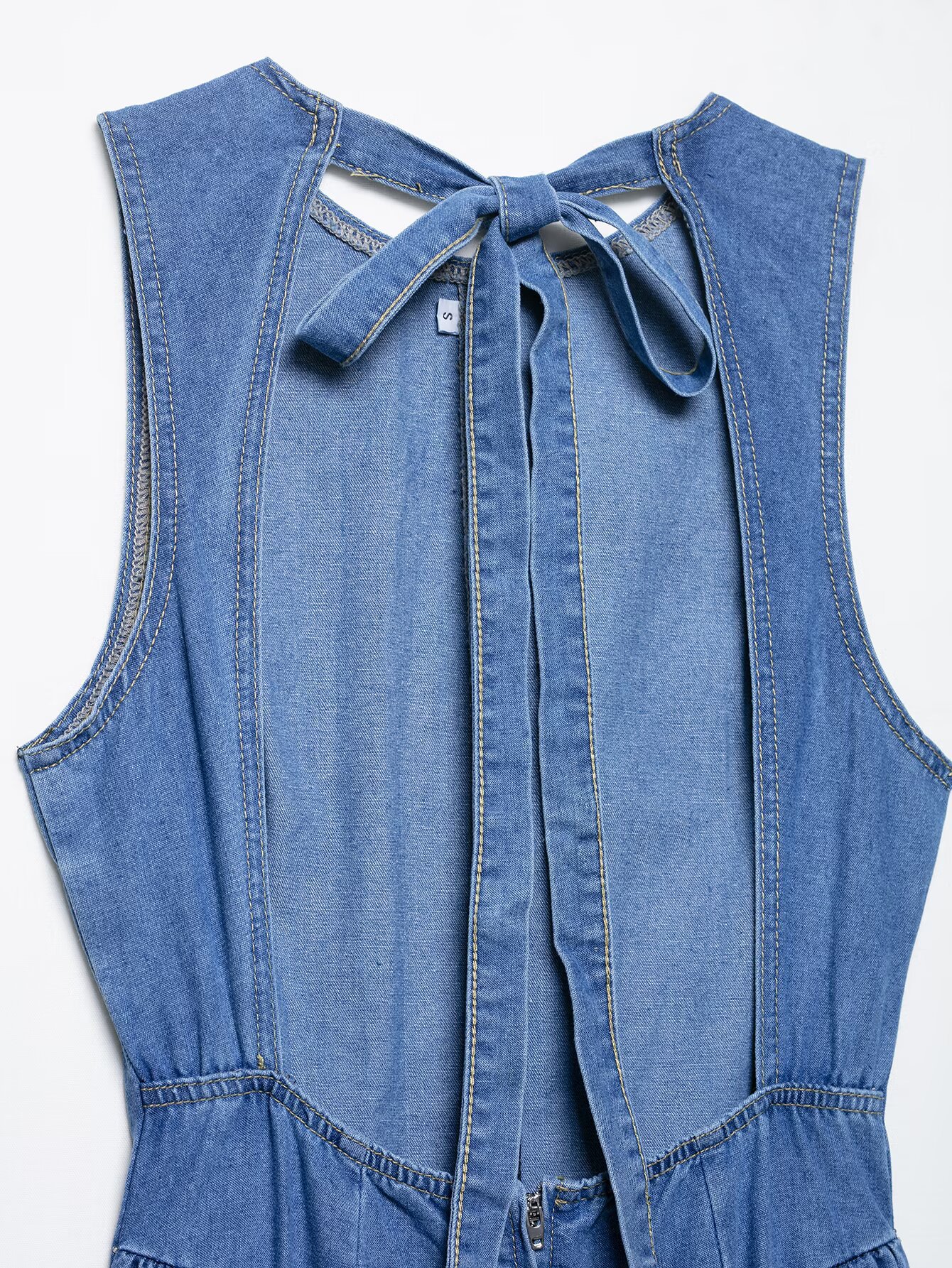Backless hanging neck tied denim dress