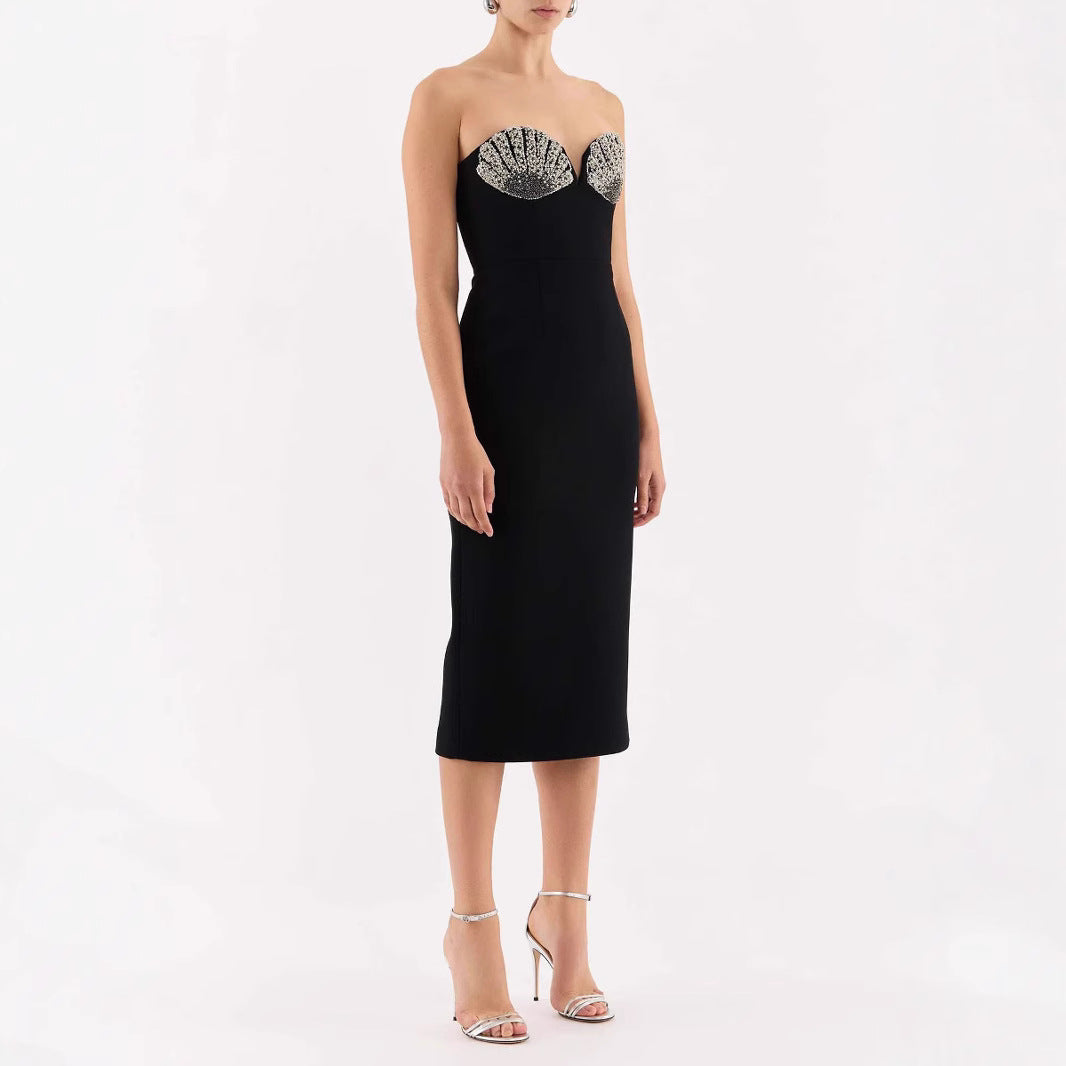 Bandage dress sexy diamond-encrusted strapless evening gown high-end light-luxury and niche evening dress