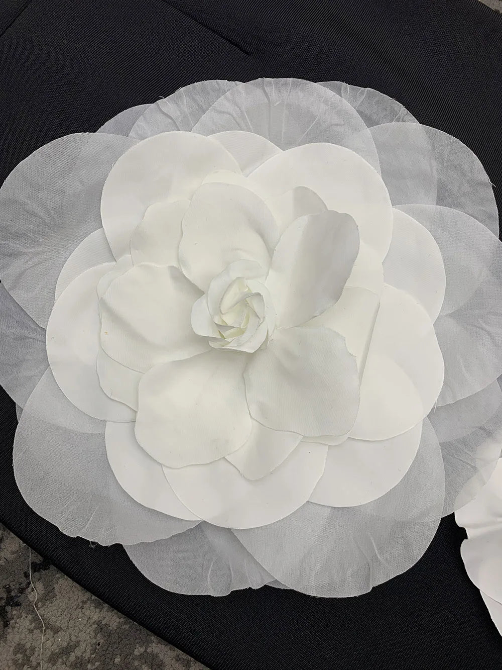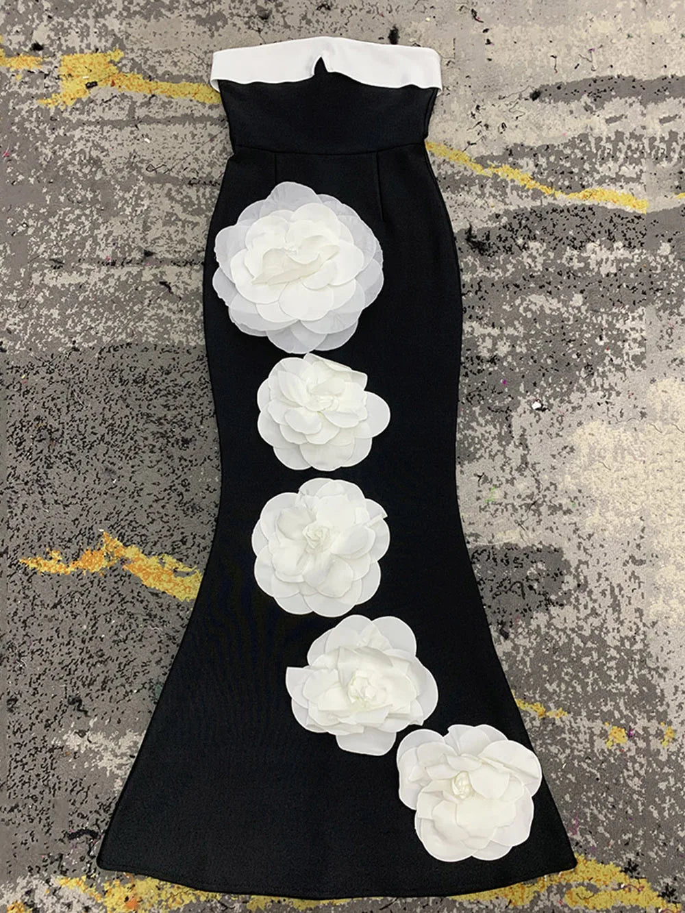 Bandage skirt strapless black and white patchwork large floral long skirt