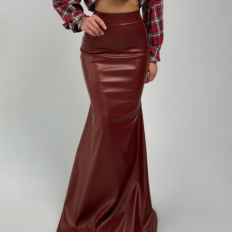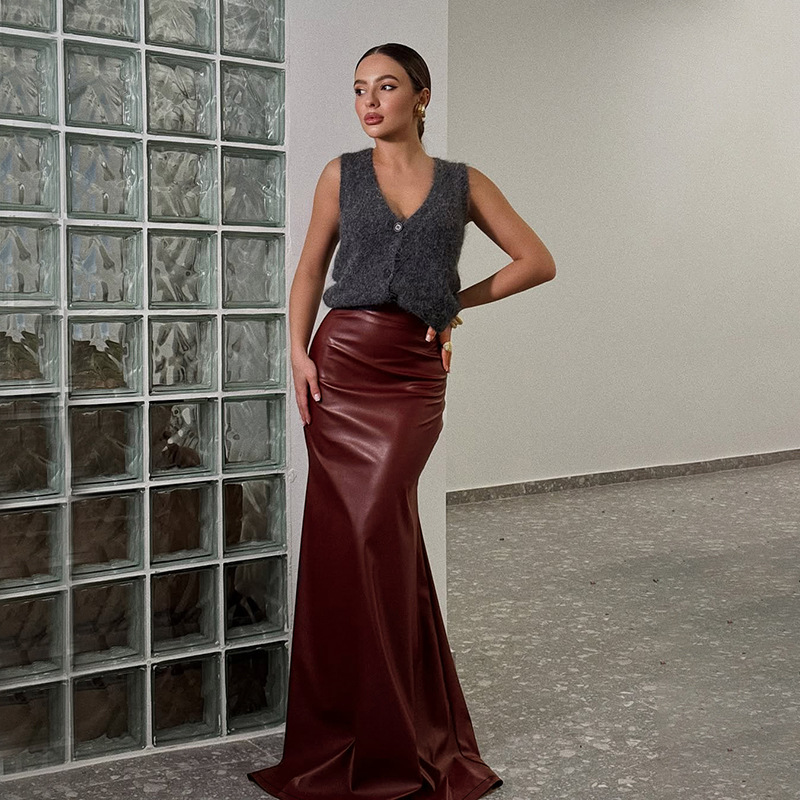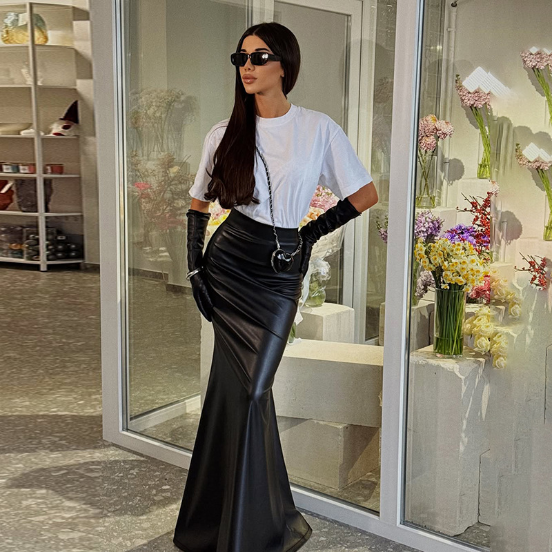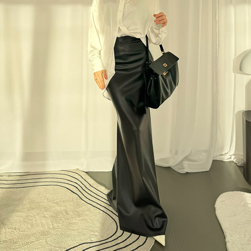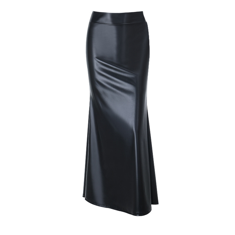 Basic fish tail half skirt black retro hip hugging skirt