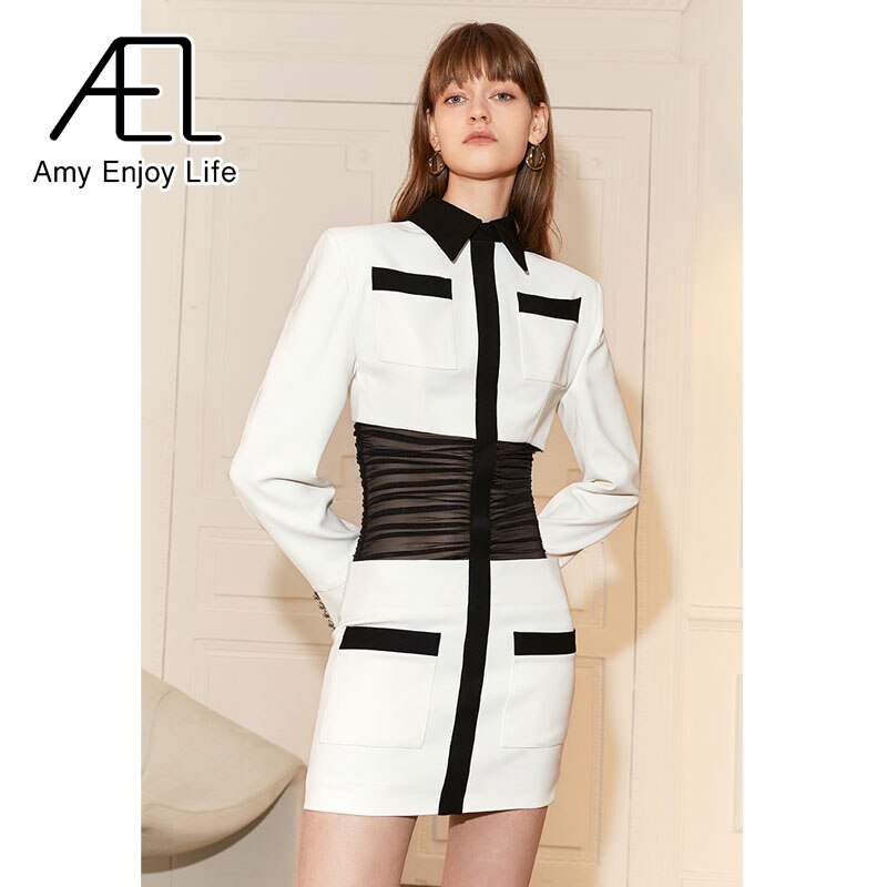 Black And White Collision Color Slim Modern Retro Sexy Black Mesh Waist Dress