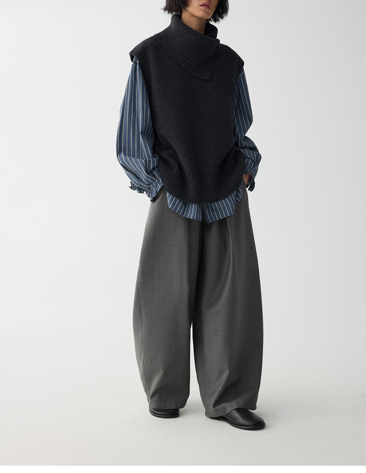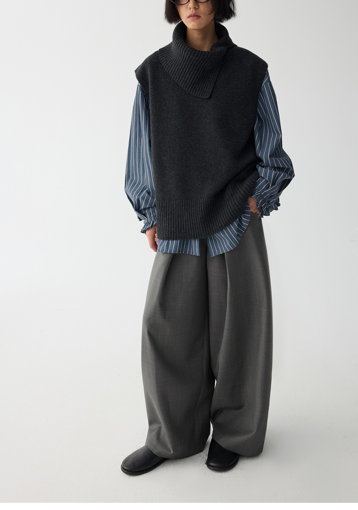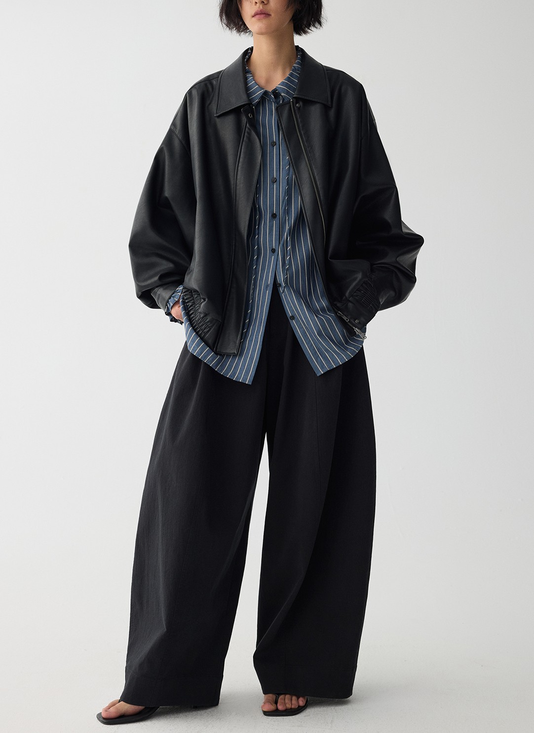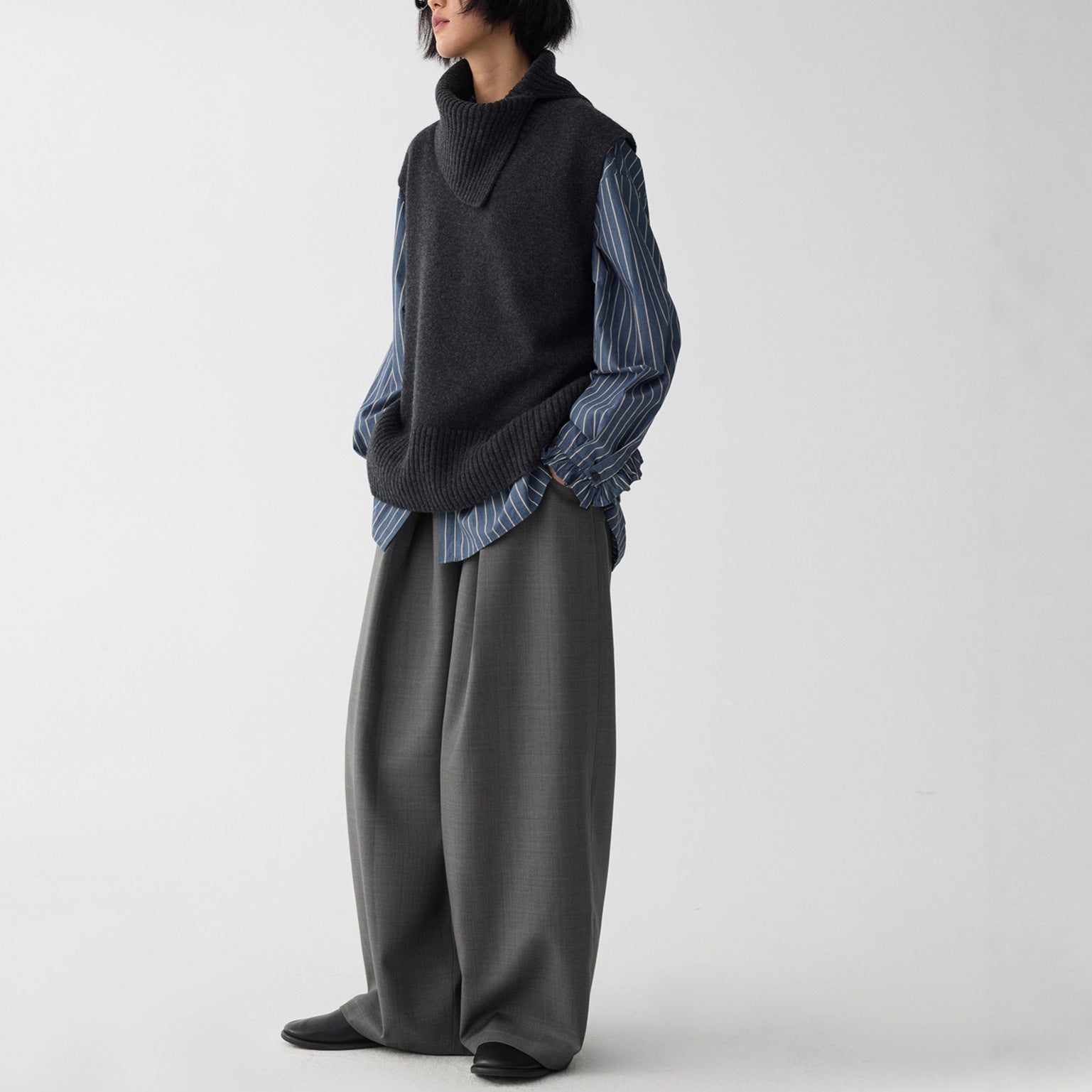 HAVERICE饭馆 蔚蓝梦境 色织深蓝条纹双层领子系带衬衫衬衣上衣