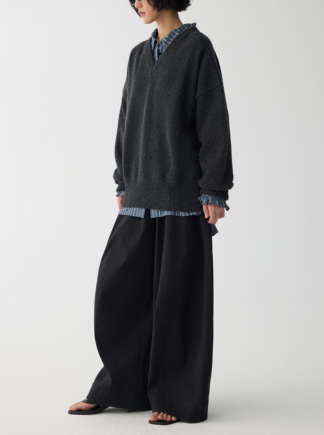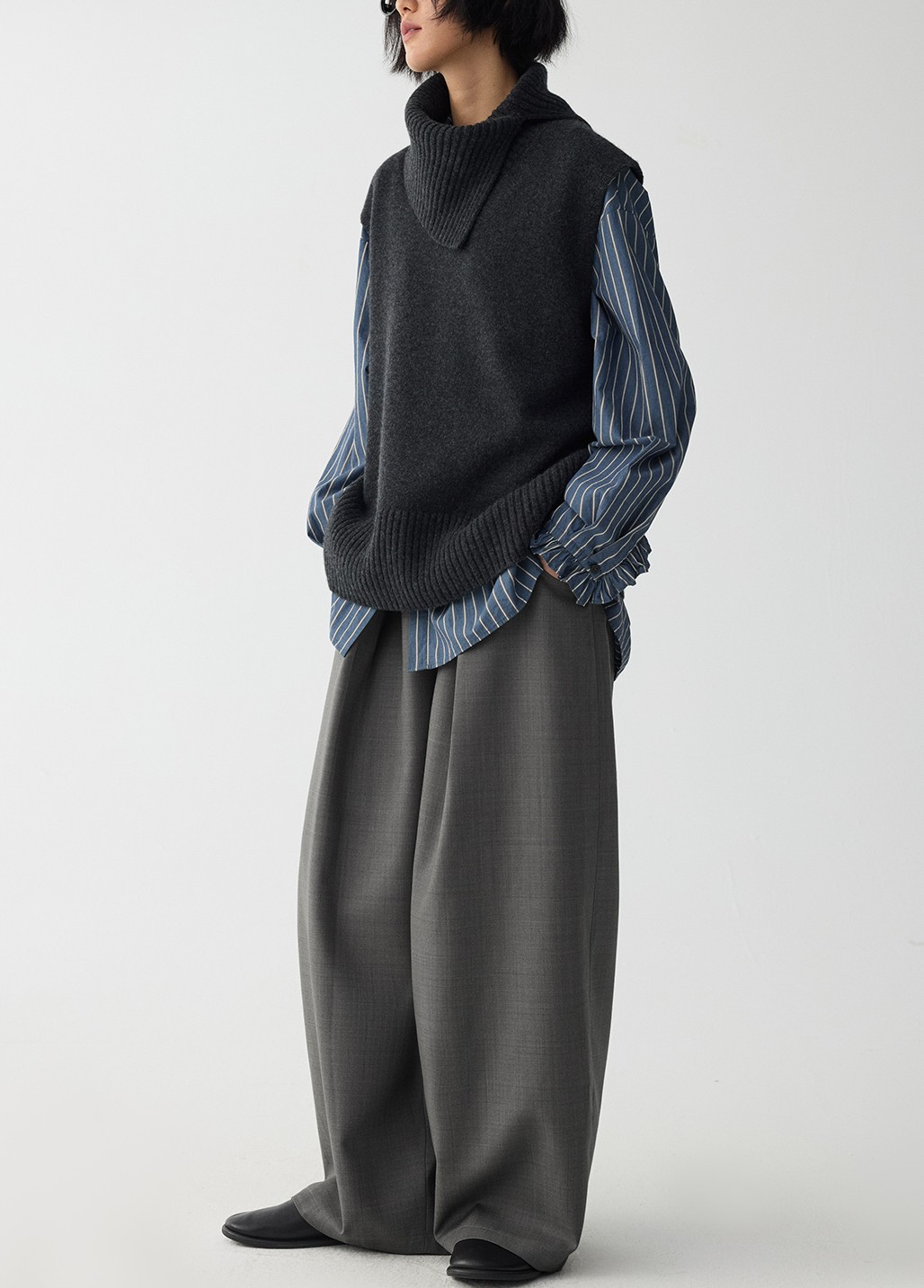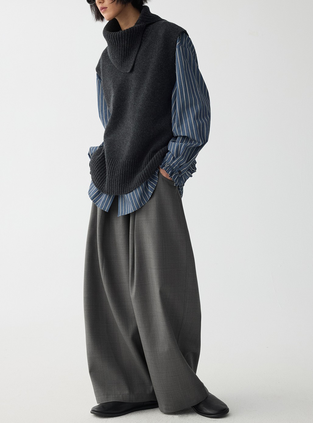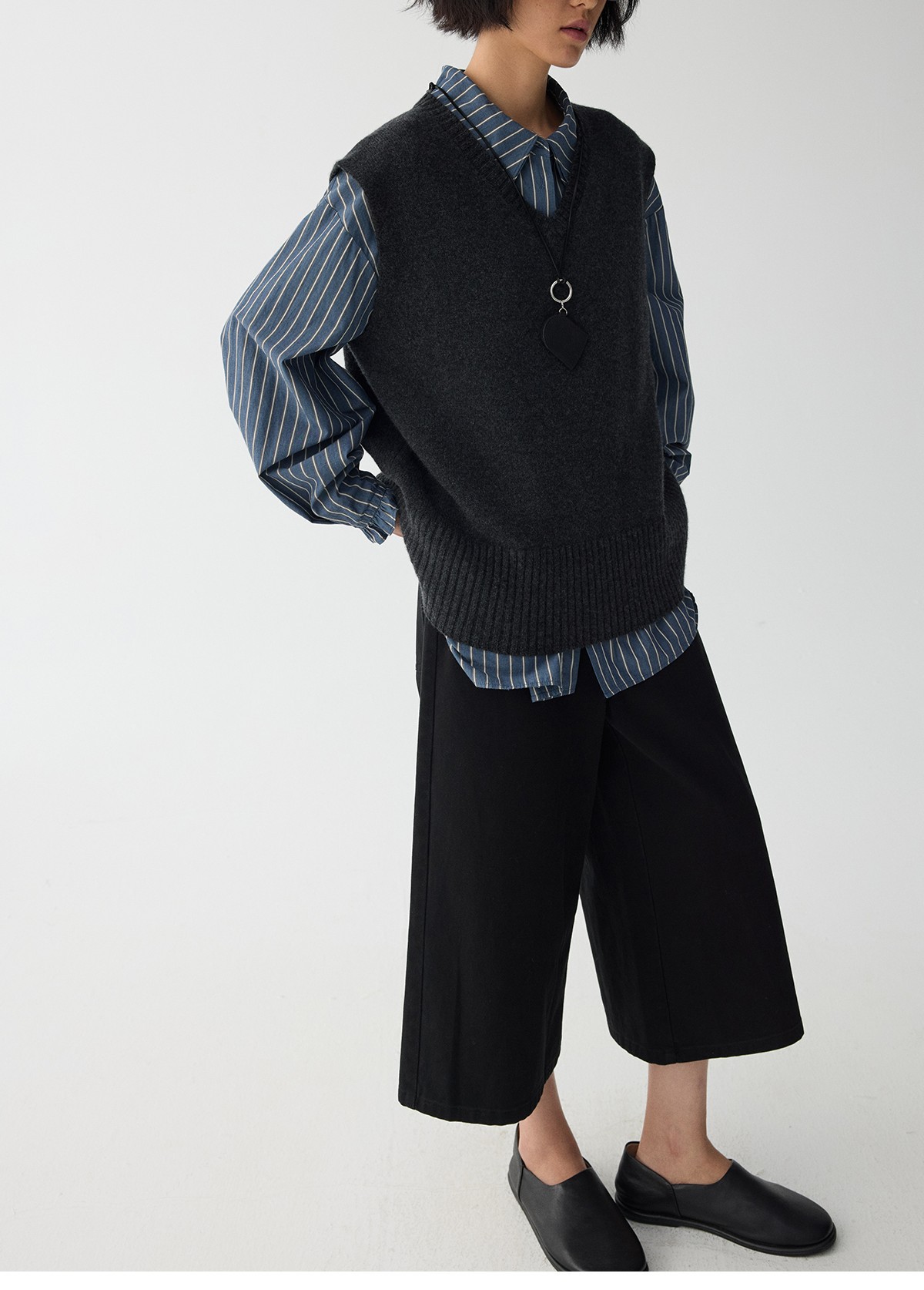 HAVERICE饭馆 蔚蓝梦境 色织深蓝条纹双层领子系带衬衫衬衣上衣