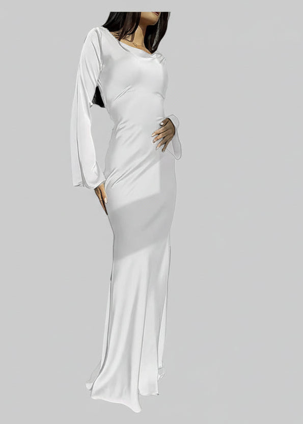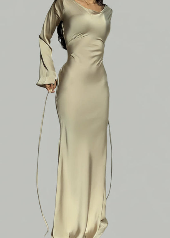 Robe ample chic à col rond, manches longues, taille nouée, style chinois, couleur unie