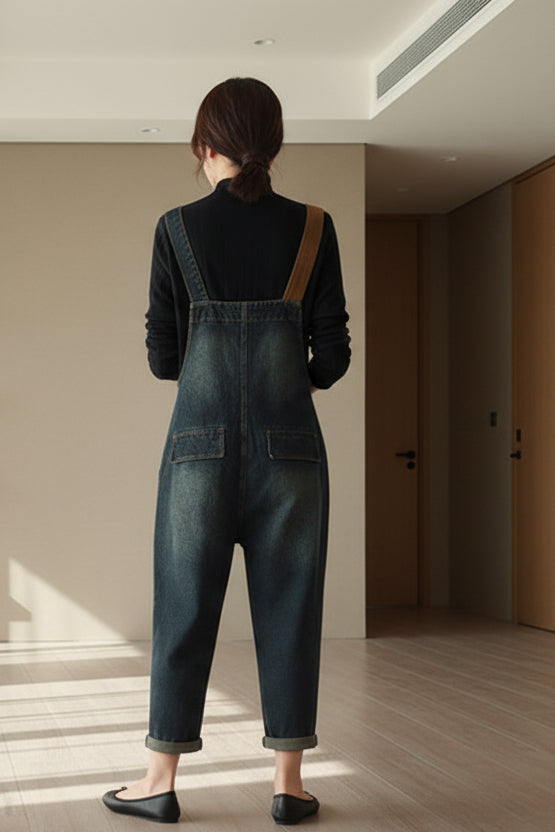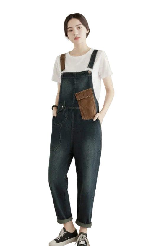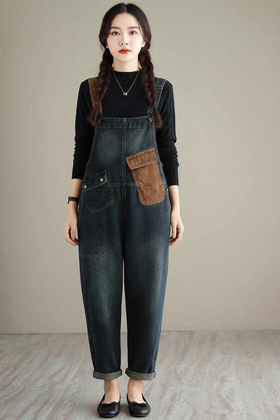 - Combinaison ample en denim à blocs de couleurs pour femmes