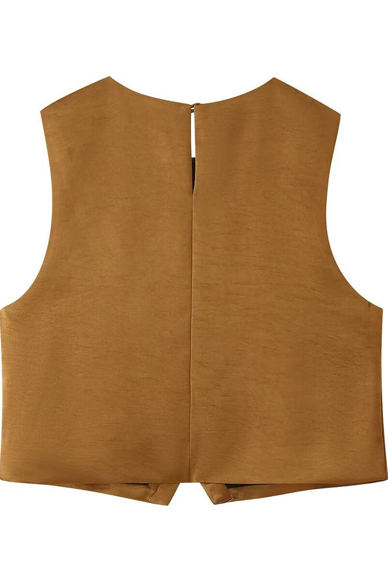 Ensemble haut en soie à double boutonnage + pantalon droit