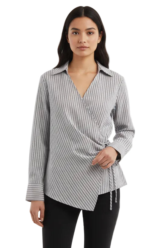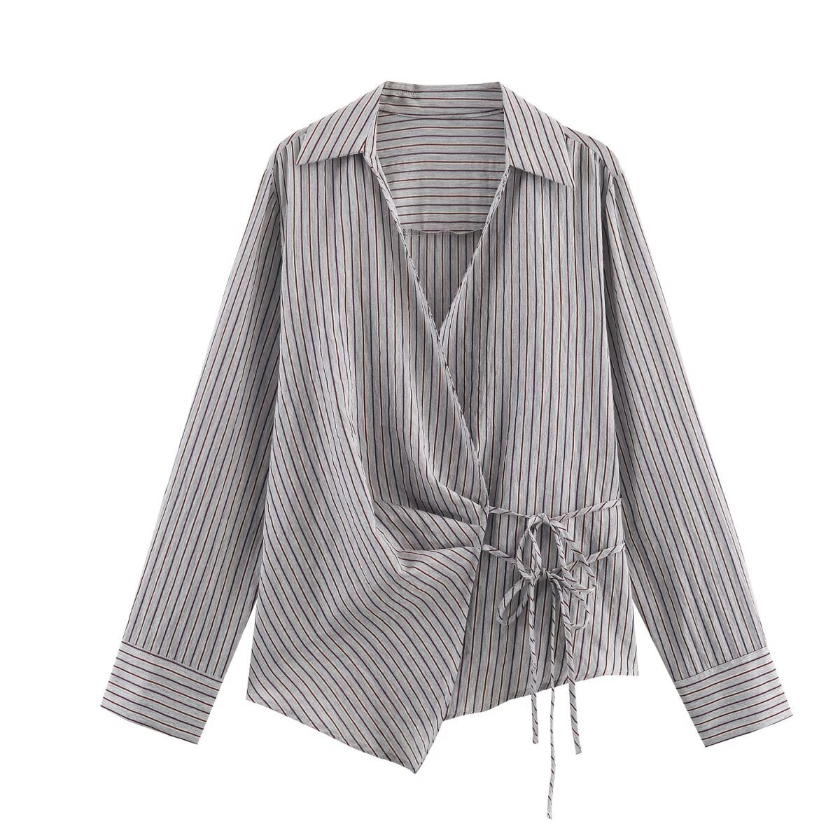 Chemise à rayures à double boutonnage avec nœud