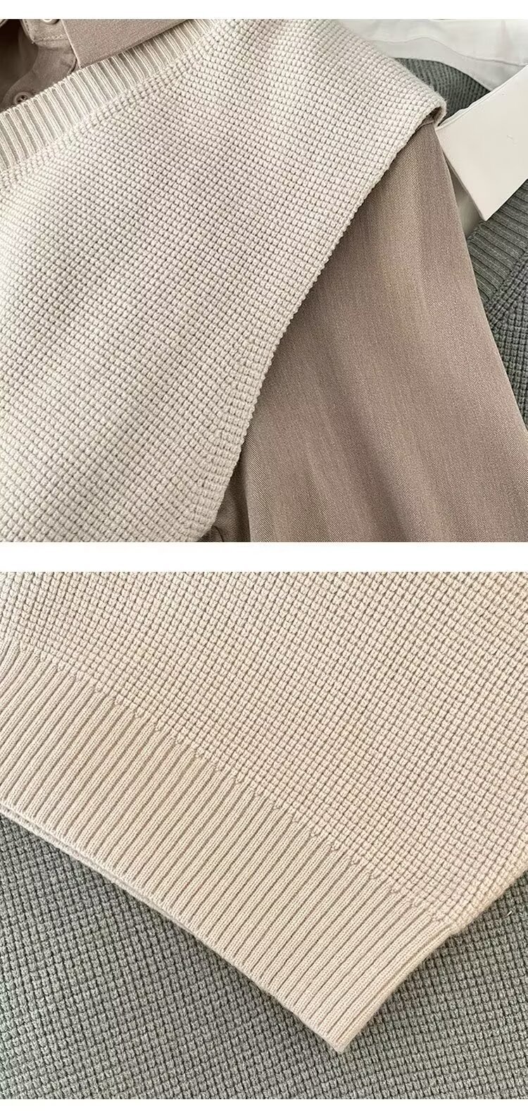 Fausse chemise deux pièces à manches longues pour homme, pull intérieur tendance en tricot