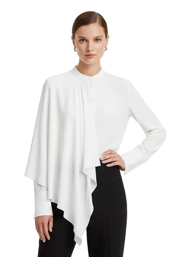 Chemise pour femmes à manches longues asymétriques et col rond à la mode