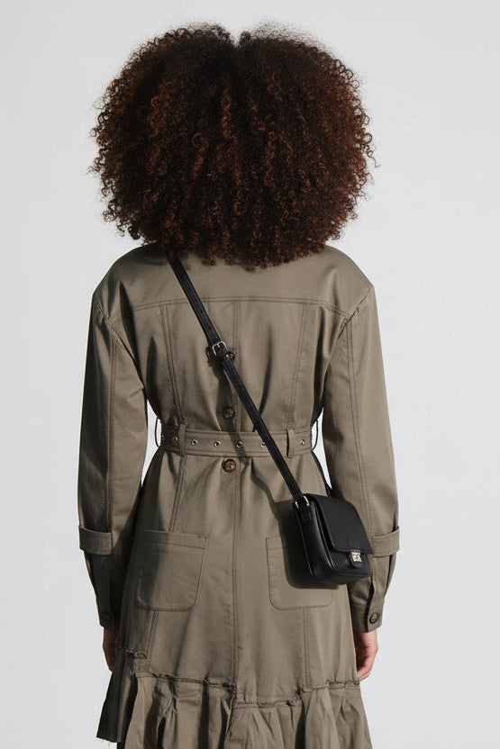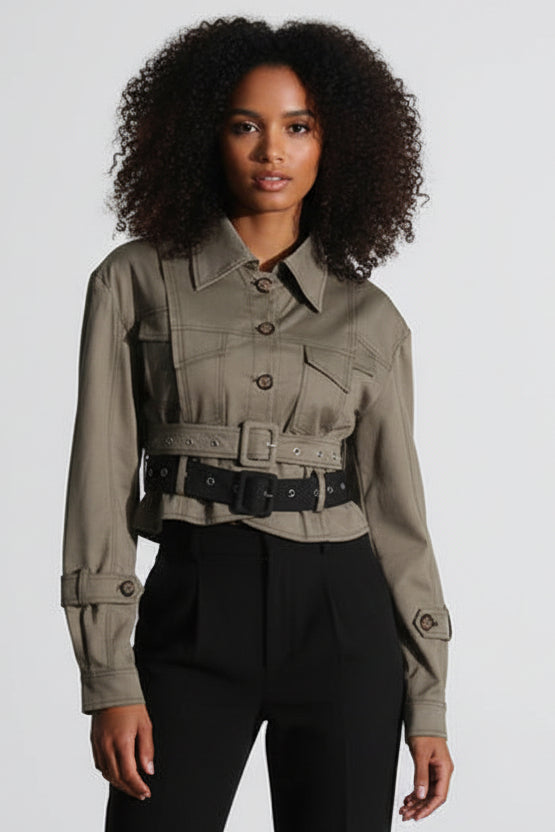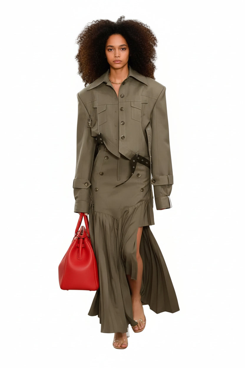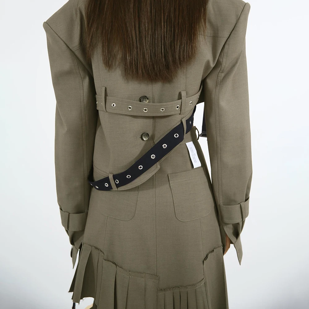 Ensemble veste courte à col retourné asymétrique à lacets et jupe plissée taille haute