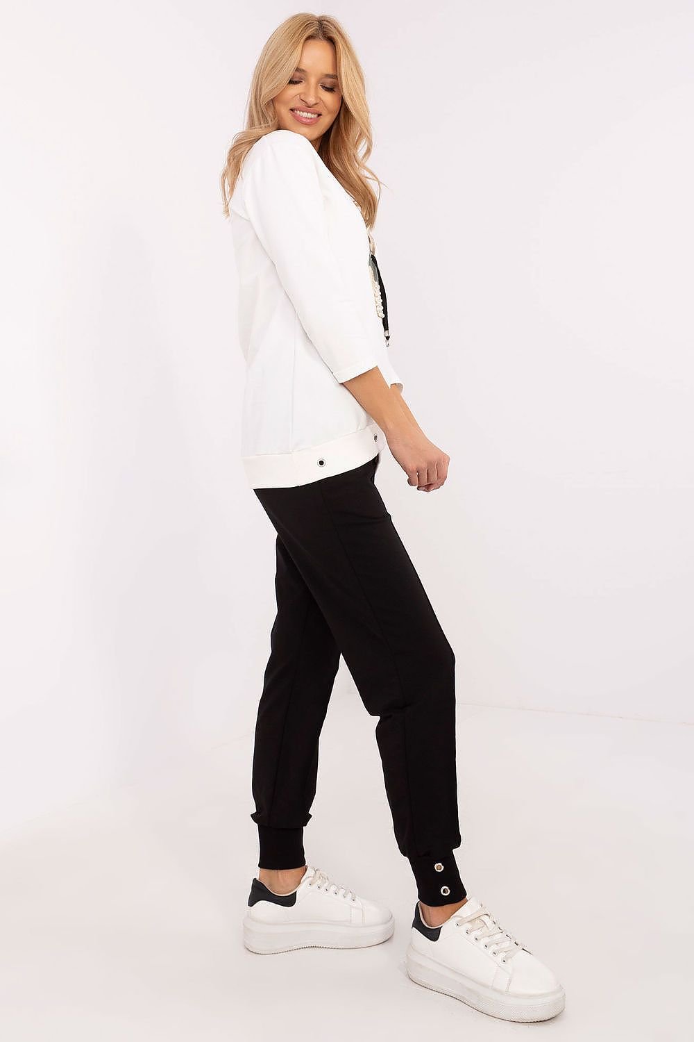 Cet ensemble de survêtement élégant et confortable, composé d'un sweat-shirt et d'un pantalon, est le choix idéal pour un style quotidien. Composé d'un mélange de coton et d'élasthanne, il offre confort et liberté de mouvement. Le sweat-shirt a une encolure ronde, des manches 3/4 et un imprimé ourson sur le devant pour plus d'attrait. Le pantalon à jambes longues, à bordures côtelées et à taille haute, est équipé de poches latérales à glissière, ce qui en fait un choix pratique. En outre, le cordon de serrage à la taille permet de l'ajuster et souligne le caractère décontracté de l'ensemble. Cet ensemble est la combinaison parfaite du confort et du design à la mode, idéal pour se détendre à la maison et pour les sorties décontractées.