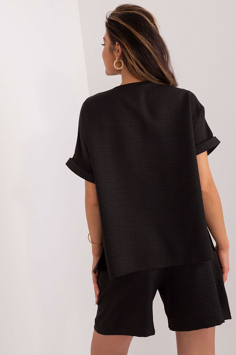 Cet ensemble pour femmes, à la fois élégant et décontracté, se compose d'une chemise et d'un short, parfaits pour les sorties de tous les jours. Le design lisse et la combinaison de coton et de polyester garantissent confort et durabilité. Le short aux genoux, avec ses jambes larges et sa taille haute, accentue la silhouette, tandis que les poches latérales ajoutent un aspect pratique. Les manches courtes et le col en V de la chemise ajoutent de la légèreté et un style estival, tandis que les boutons sur le devant permettent de l'enfiler facilement. C'est le choix idéal pour les journées chaudes, alliant confort et look à la mode.