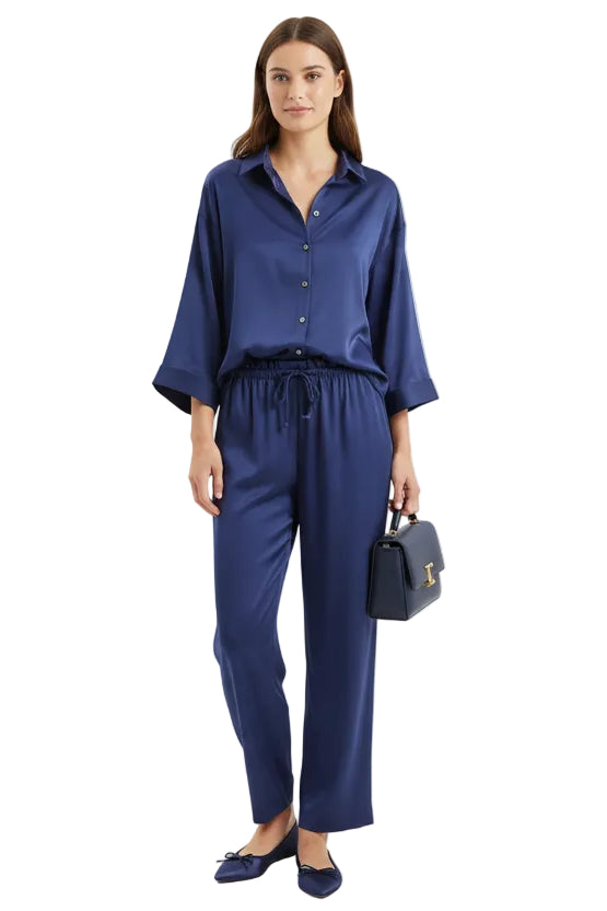 Ensemble chemise en lin + pantalon à jambes droites