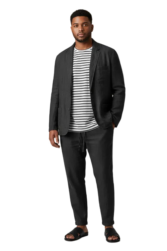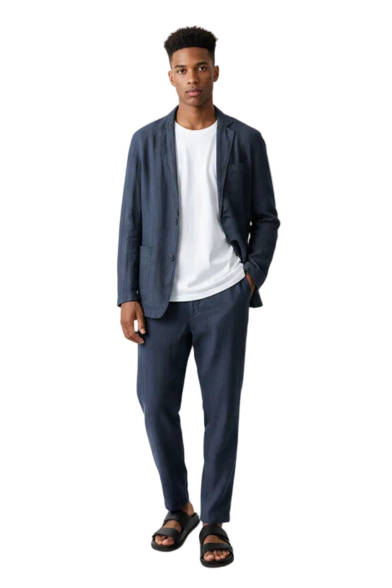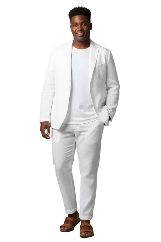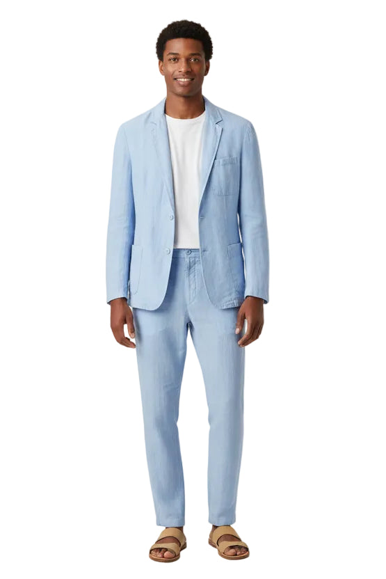 Ensemble de costume en lin pour homme, blazer d'été décontracté pour homme, vêtements pour hommes en coton et lin léger, ensemble deux pièces