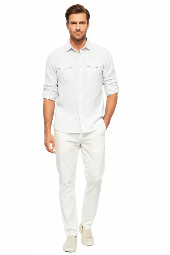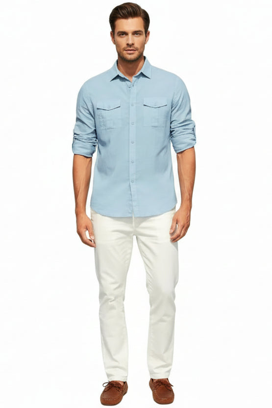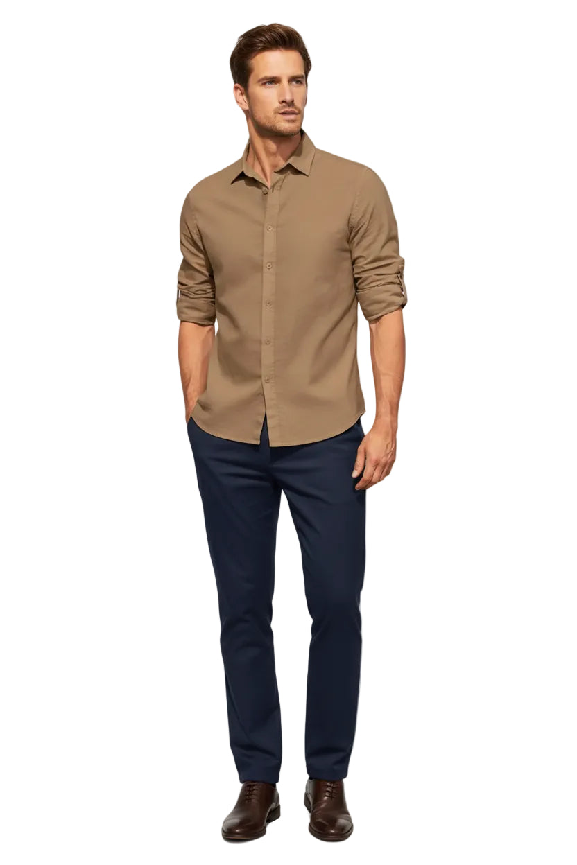 - Chemise à manches longues pour hommes, grande taille, à col et boutons