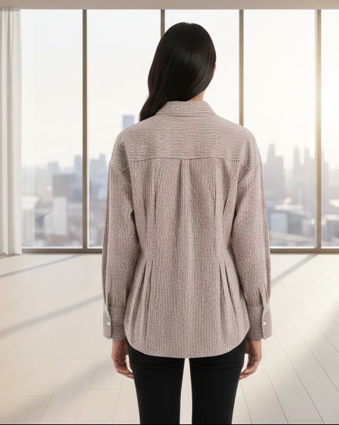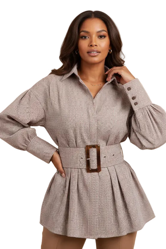 Chemise à manches longues rayée avec ceinture resserrée à la taille