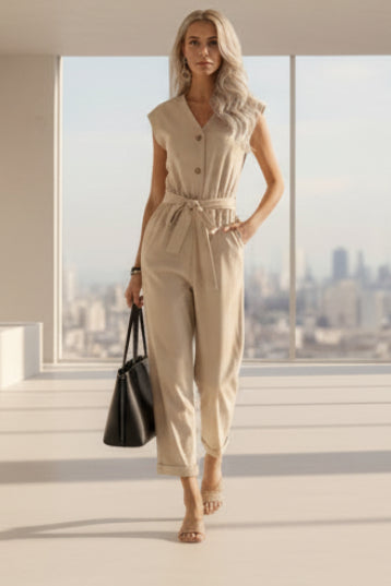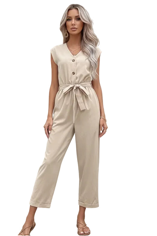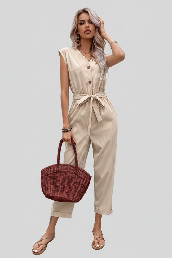 Combinaison d'été pour femmes européenne et américaine, sans manches, à col en V, avec pantalon et taille courte