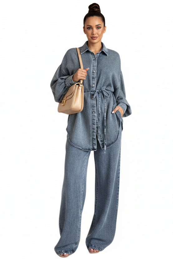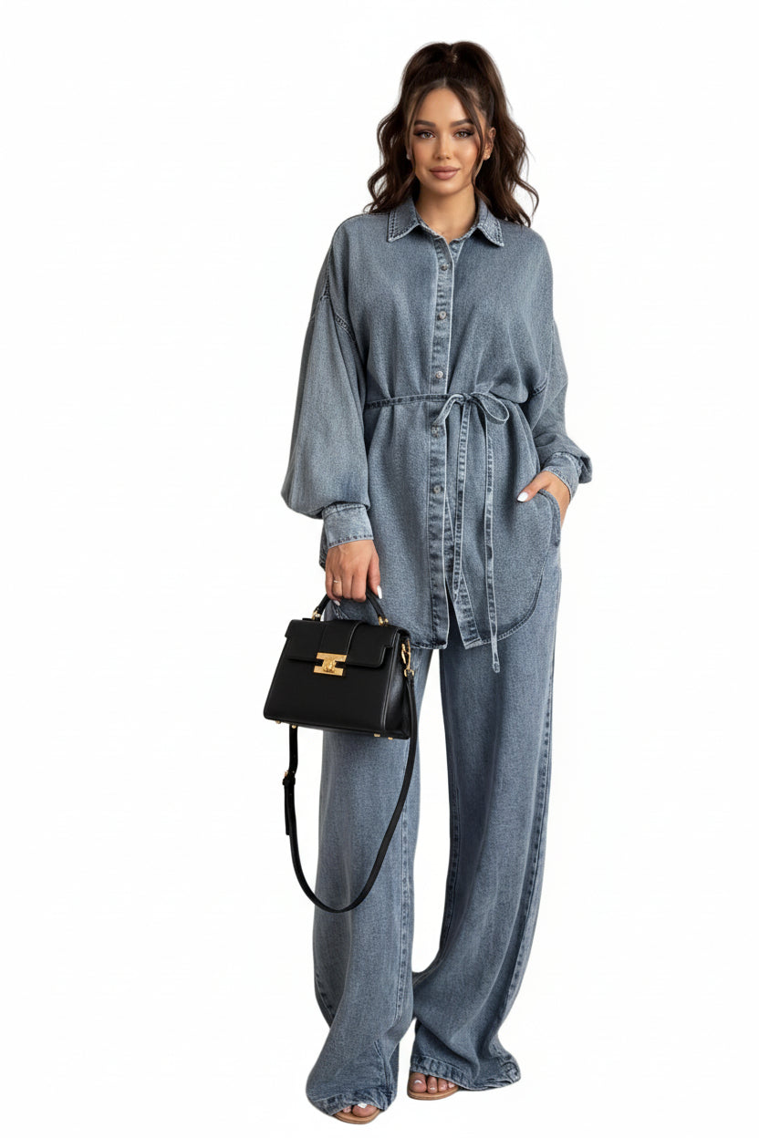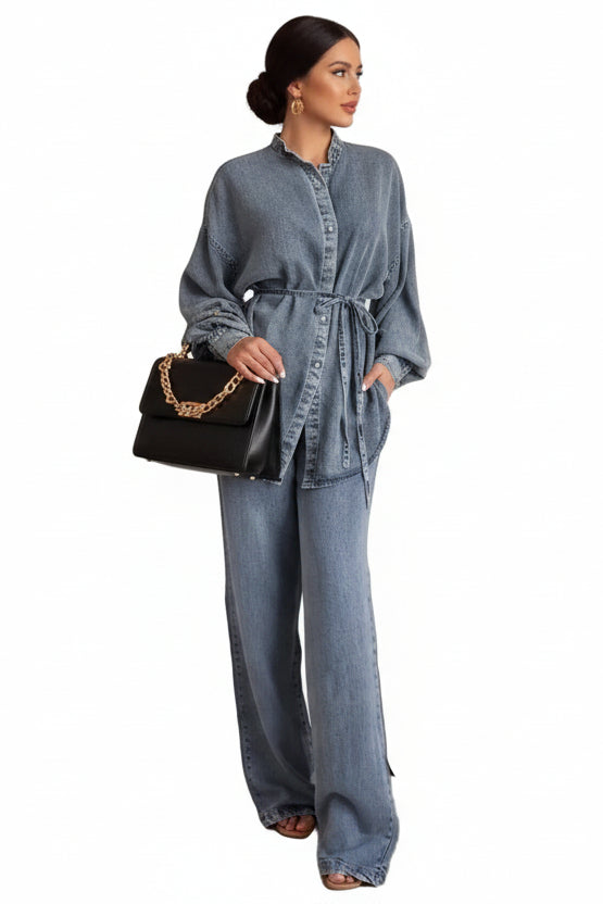 Veste en denim ample pour femmes avec bretelles à boutons de chemise