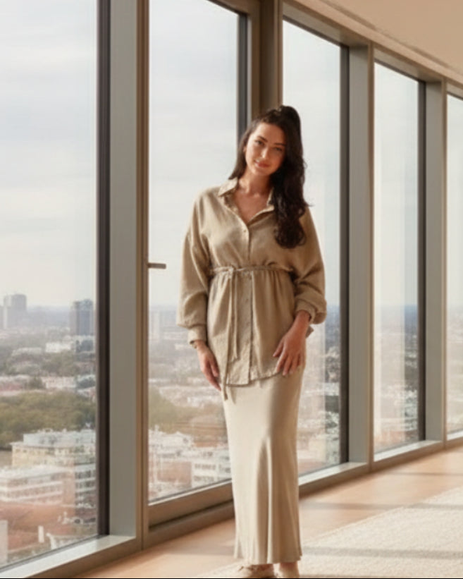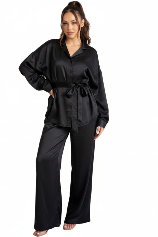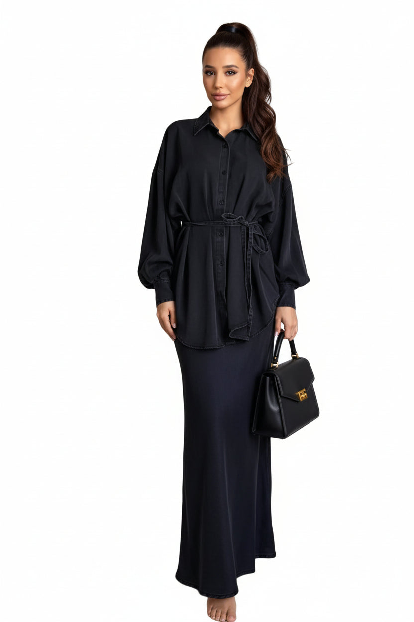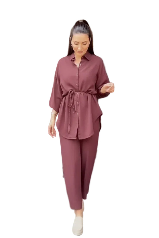 Couleur : Bleu clair (ensemble pantalon), Noir (ensemble pantalon), Bleu clair (ensemble robe), Noir (ensemble robe), Marron café (ensemble robe), Rouge vin (ensemble robe), Vert clair (ensemble robe)