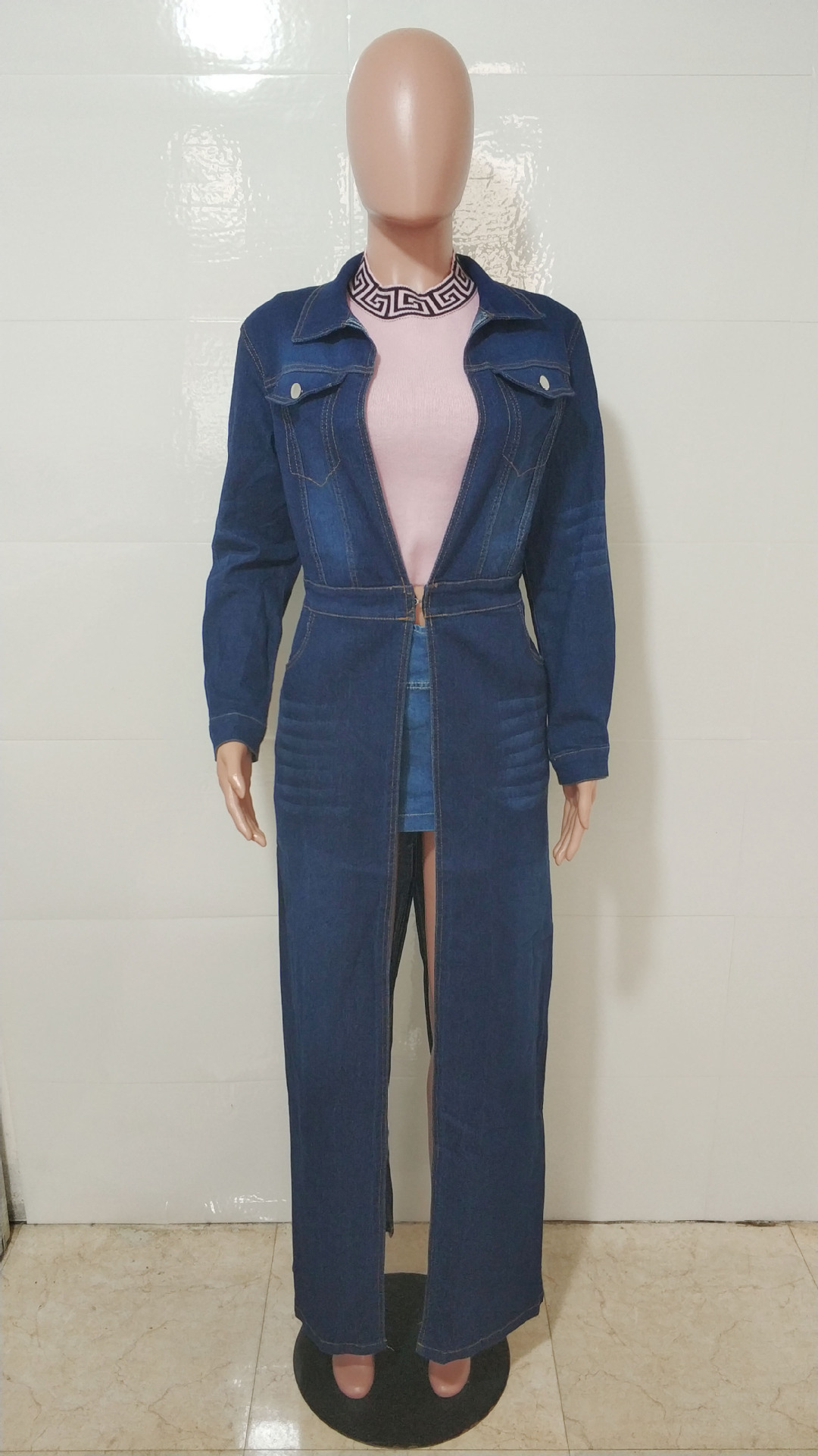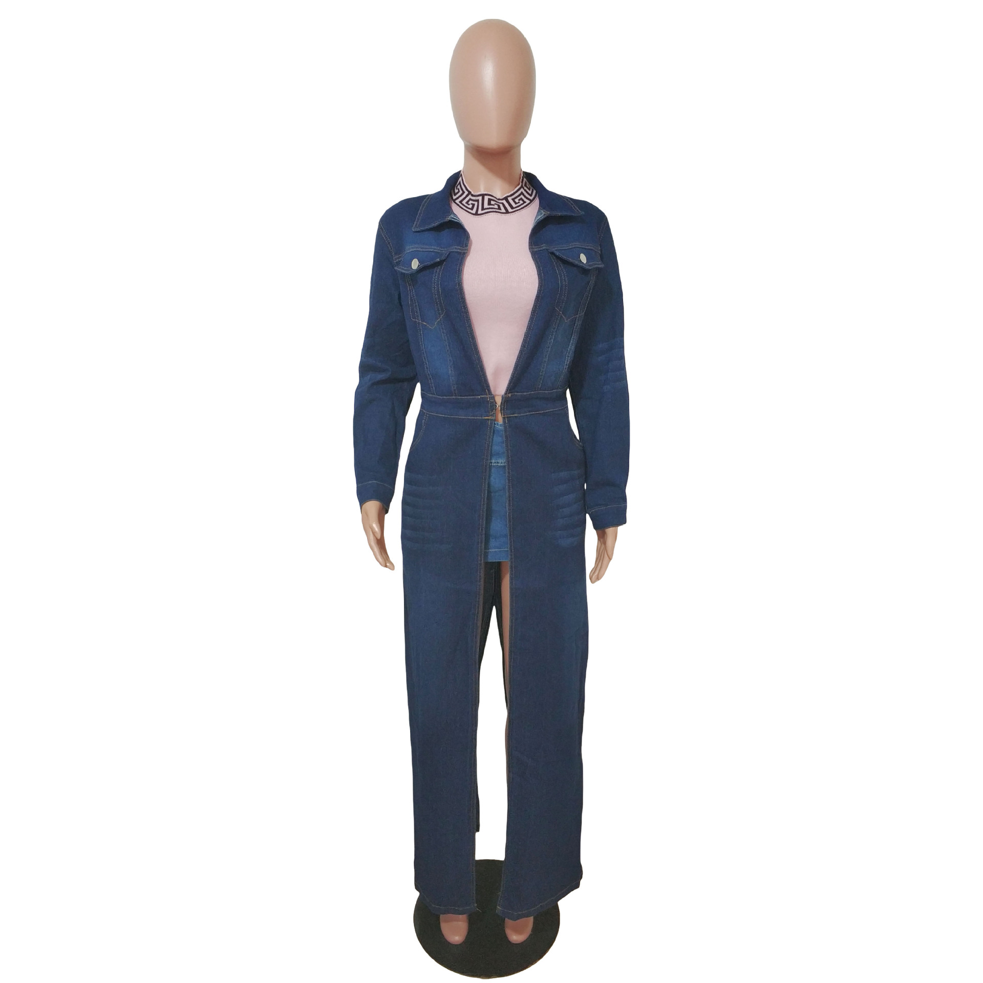 Women's pocket long sleeved denim windbreaker jacket